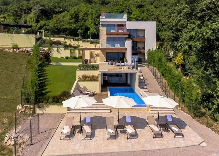 Villa Altavista - Seaview & Relax With Heated Pool & Minigolf Opatija располагается на расстоянии 4 км от Церкви Святого Иакова и располагает процедурным кабинетом, гидромассажной ванной и сауной. Вилла предлагает гостям уходовые процедуры, патио и игровую площадку, приблизительно в 10 минутах езды от Ловрана.